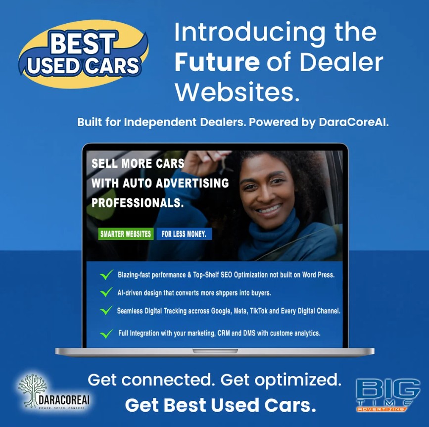 Built from the ground up for Independent Dealers by the Big Time Advertising & Marketing development team. Powered by DaraCoreAI.